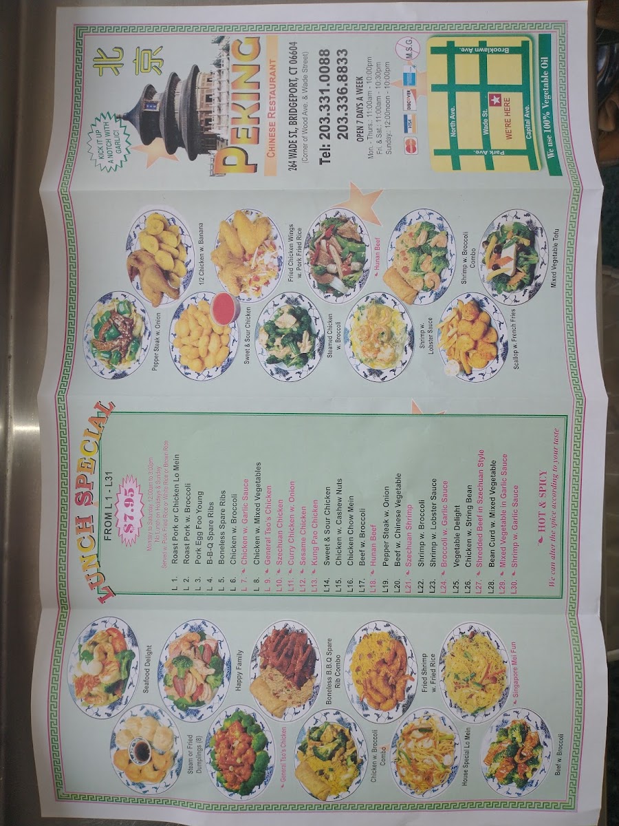 Welcome to Peking Restaurant - Bridgeport, a gem located at 264 Wade St in Bridgeport, CT. Known for its commitment to fresh, flavorful cuisine, Peking Restaurant serves an array of classic Chinese dishes that resonate with local patrons. Highlights include the renowned General Tso Chicken, which can be customized to your spice preference, as noted by satisfied customers like Alison Doggart.